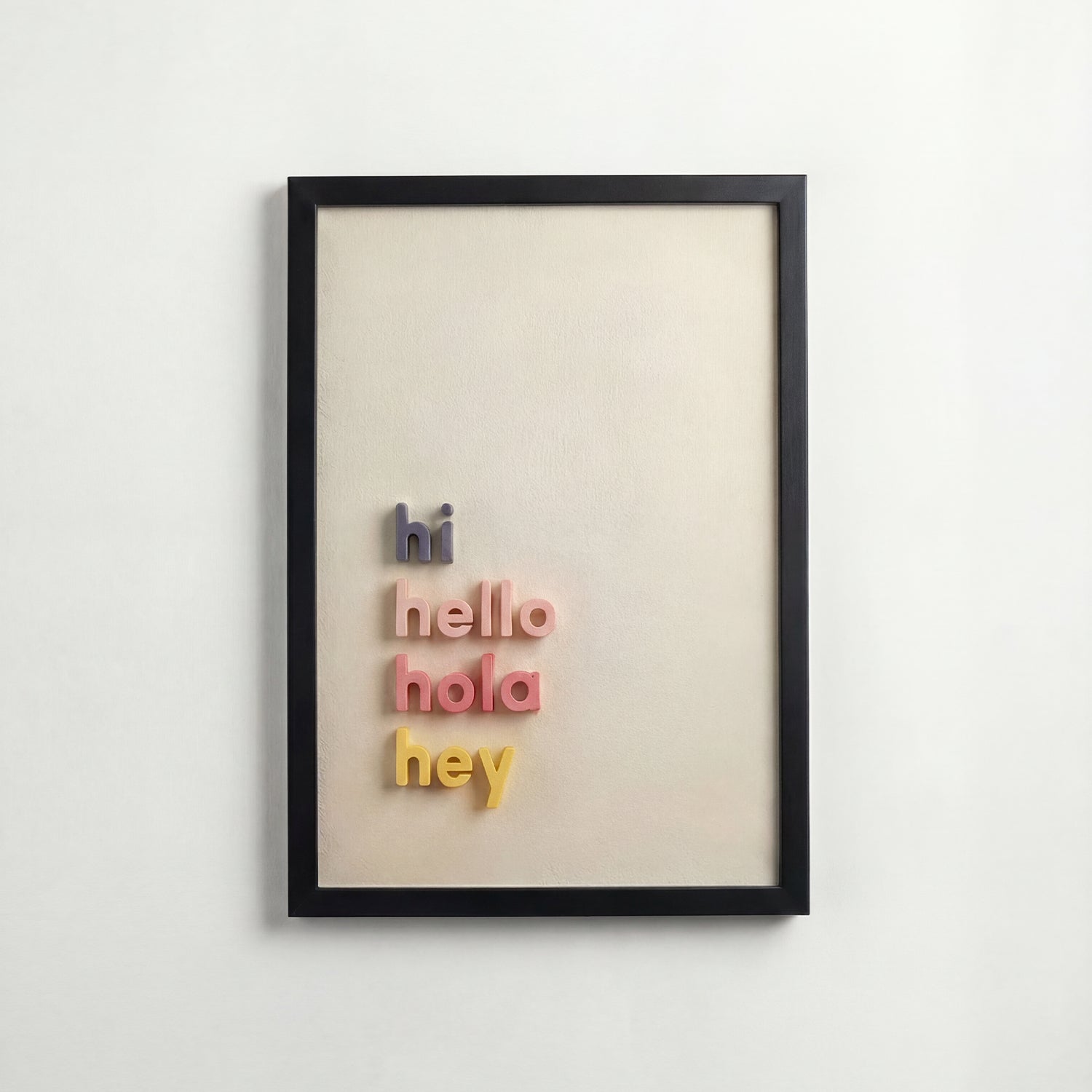 “hi. hello. hola. hey.” yazılı bu tablo, modern ve sıcak bir atmosfer yaratmak isteyenler için tasarlandı.